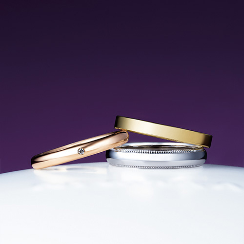 人生のお守りとなるように、ふたりのもとへ寄せられた祝いの言葉が込められたデザインの結婚指輪。シンプルだからこそクオリティの高さが際立つリングは、指にあわせてデザインや幅が選べます。